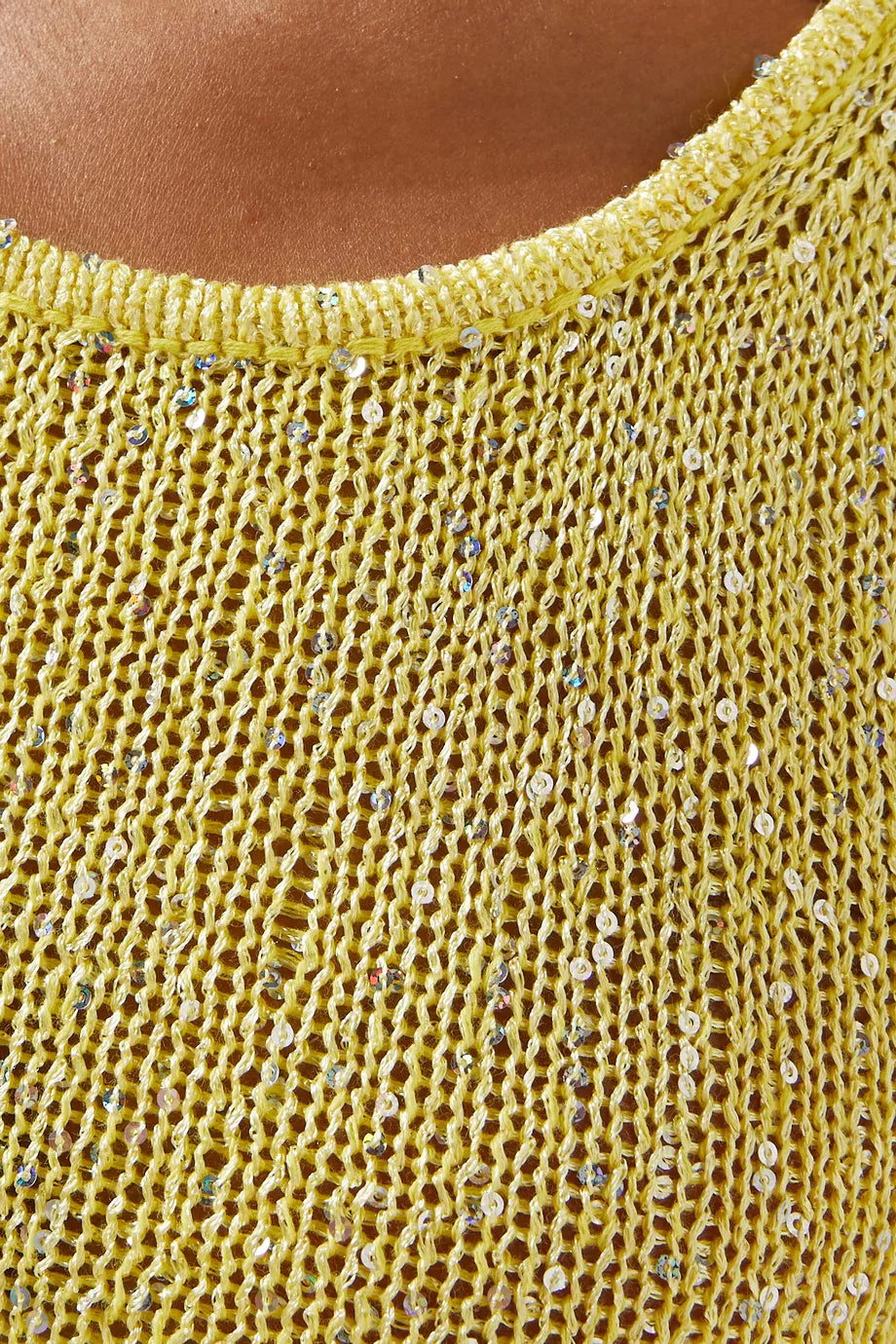 Radiate sunshine in the Natalia Maxi by Asta Resort, a stunning crochet-knit dress in vibrant yellow with an elegant open back for the ultimate vacation vibe.