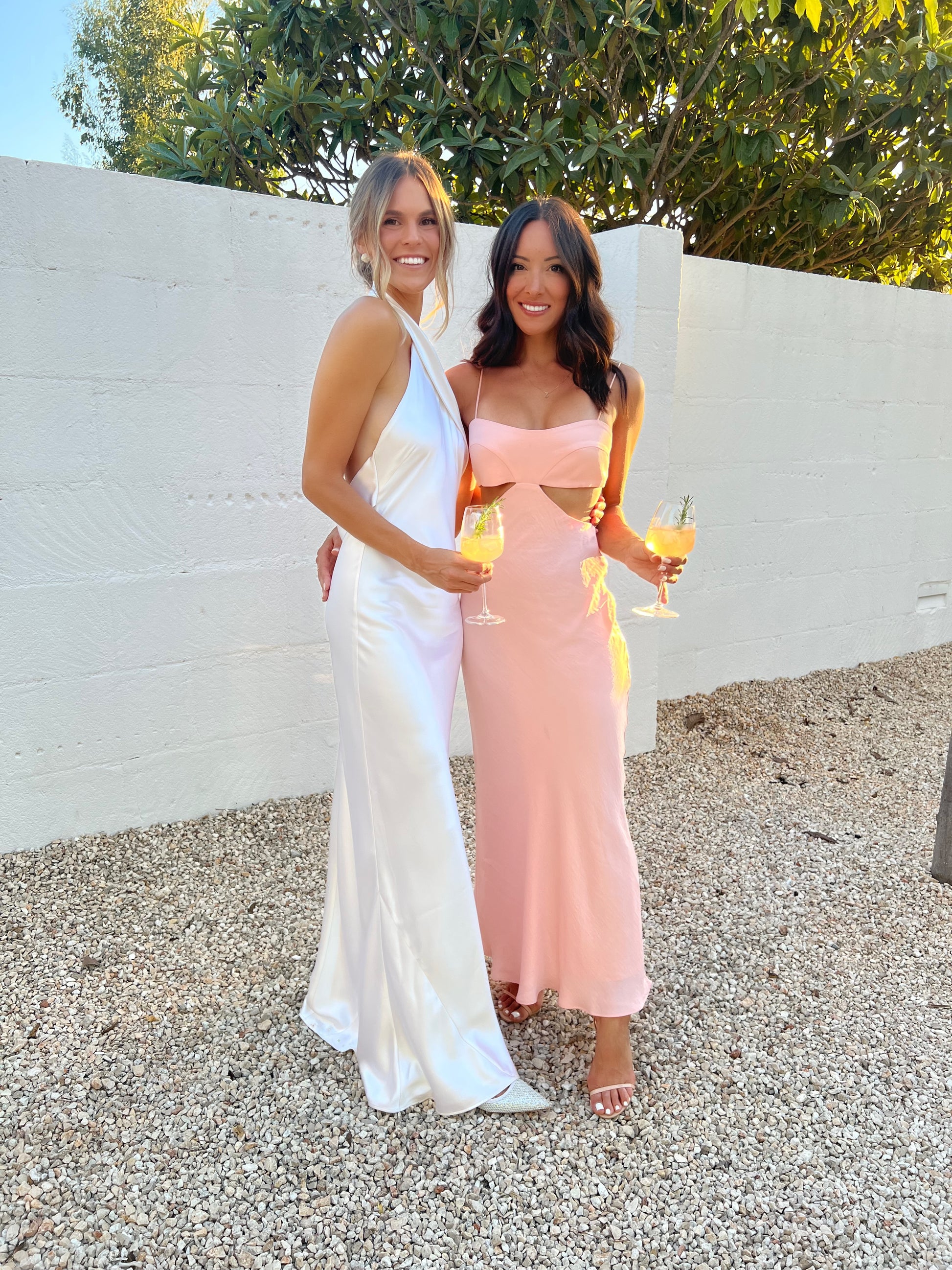 Soft structure with a summer state of mind. Cut from a breathable linen blend in a pastel sorbet hue, the Browning dress features a gathered bodice, open back with cross-over straps, and a clean, A-line silhouette. It’s light, easy, and flattering—ideal for warm days, weddings, and everything in between.